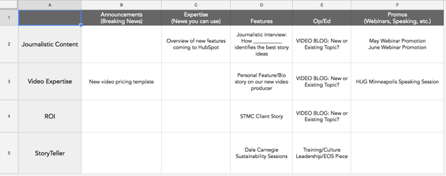 One of the best ways to identify and organize stories is with a video content-blocking spreadsheet. This simple spreadsheet can help you think more creatively about ways to feature your existing brand stories.